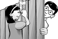 | 1 | Use the knife to cut around the top of each milk carton, removing the peaked "roof." |  | | 6 | Hold the carton up to your eye and look through the hole that you cut. You should see your ceiling through the top of the carton. If what you see looks tilted, adjust the mirror and tape it again. | | 2 | Cut a hole at the bottom of the front of one milk carton. Leave about 1/4 inch of carton on each side of the hole. |  | | 7 | Repeat steps 2 through 6 with the second milk carton. | 3 . . | Put the carton on its side and turn it so the hole you just cut is facing to your right. On the side that's facing up, measure 2 3/4 inches up the left edge of the carton, and use the pencil to make a mark there. Now, use your ruler to draw a diagonal line from the bottom right corner to the mark you made