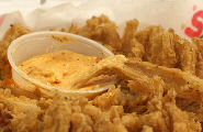 | Worst Food in America: Outback Steakhouse Aussie Cheese Fries with Ranch Dressing 2,900 calories, 182 g fat, 240 g carbs This weapon of mass construction is the caloric equivalent of eating 14 Krispy Kreme doughnuts, before your dinner arrives. Even if you split this "starter" with 3 friends, you'll have downed a meal's worth of calories. Super Substitution: Both the Seared Ahi and the Shrimp on the Barbie offer a big dose of protein, which helps diminish hunger without putting you into calorie overload. Worst Drink: Jamba Juice Chocolate Moo'd Power Smoothie (30 fl oz) 900 calories, 10 g fat, 183 g carbs, (166 g sugars) Jamba Juice calls it a smoothie; we call it a milkshake. In fact, this beverage contains more sugar than two pints of Ben and Jerry's Butter Pecan ice cream. Turn Down the Power: Seventy-five percent of this chain's "power smoothies" contain in excess of 100 grams of sugar. Stick to Jamba's lower-calorie All Fruit Smoothies, which are the only menu items that contain no added sugar. And always opt for the 16-ounce "small." |
