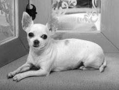 Tiny loved Kraft Dinner and would follow Larry to the pillow house. |