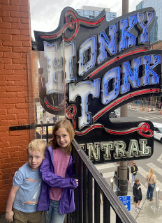 Karen and Mike accompanied the Besselsen family on a trip to visit Larry and Gina in early April. The hosts showed the guests a great time, putting them up at their Mt. Juliet home and taking them into downtown Nashville. On the fun agenda: a cookout at home, a Redneck Comedy Tour Bus, Dragon Park aka Fannie Mae Dees Park, Nashville’s Parthenon, Honky Tonk Central, create your own Goo Goo Clusters, duckpin bowling at Pins Mechanical, dinner at Amerigo Italian Restaurants, and more. Jill, Jon, Natalie, Henry, Larry, Gina, Karen, and Mike had lots of laughs set to country music. Great time!
